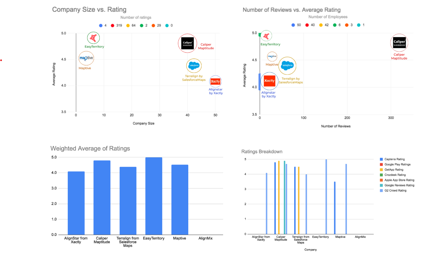 Overview: Xactly is a large company, originally focused on building compensation plans for sales teams. Xactly has over 1000 employees, and has many software products supporting enterprise sales teams and revenue operations teams. They purchased a company called Alignstar, which brought Territory Building and Design to their suite of tools. Alignstar was one of the leaders in the space when they purchased them. We believe that about 50 employees are working on Alignstar at Xactly today, making them one of the larger companies in this group, but also being supported by the framework of the broader Xactly.